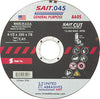 Type 1 cut-off wheel for angle grinders. A60S grade. .045" width. General purpose. Use with reusable 5/8-11 adaptor to fit angle grinders. Extremely fast cutting with long life. For ferrous and non-ferrous metals. Size 4-1/2" x .045" x 7/8".